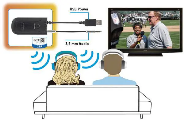 Serata di cinema a casa anche se i bambini sono già a letto e devono dormire. Utilizzate semplicemente il trasmettitore musicale Bluetooth sul vostro televisore! Collegate l'adattatore al vostro televisore e indossate le cuffie Bluetooth.