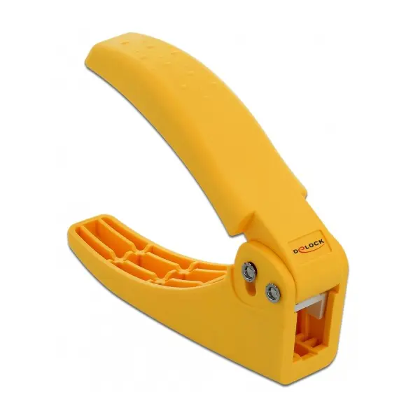 Con questo strumento Delock si può installare rapidamente e facilmente un cavo di rete su una spina RJ45 per l'assemblaggio sul campo. I singoli fili devono essere preassemblati nella spina, quindi la spina viene inserita nello strumento e pressata.