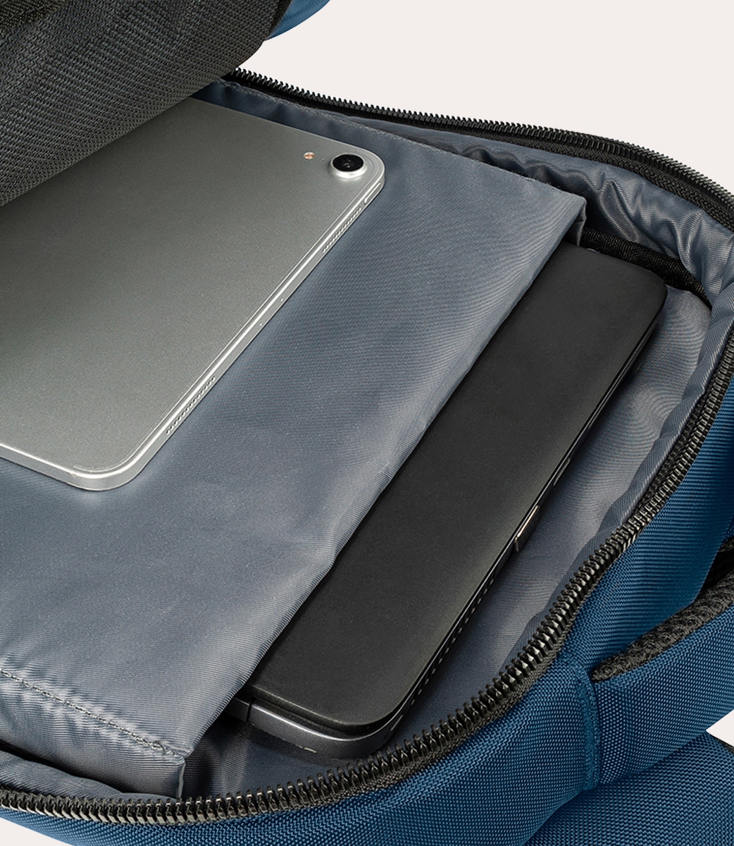 Zaino con AGS per Laptop 15.6" e MacBook Pro 16" BKLUN15-AGS-B Zaino per laptop 15.6" e MacBook 16" dotato di sistema anti-gravity, una sospensione elastica degli spallacci concepita per ridurre il carico sulle spalle e sulla schiena quando il corpo è in movimento. La funzione anti gravity system, oltre a migliorare la postura e a ridurre lo sforzo muscolare, attenua in modo specifico la rigidità dei muscoli del dorso e del collo distribuendo in modo equilibrato il peso dello zaino tra le spalle e il bacino. Realizzato in materiale tecnico ad alta densità, Luna Gravity ha un'ottima organizzazione delle tasche. Il vano interno, è dotato di una tasca protettiva per laptop mentre Il lato anteriore presenta tasche con differenti altezze chiuse da cerniere. La parte posteriore ha uno schienale ergonomico, spallacci imbottiti con sistema di sospensione, fascia per trolley e tasca di sicurezza. Una rain cover estraibile, nascosta all'interno della base, permette di proteggere lo zaino durante la pioggia.