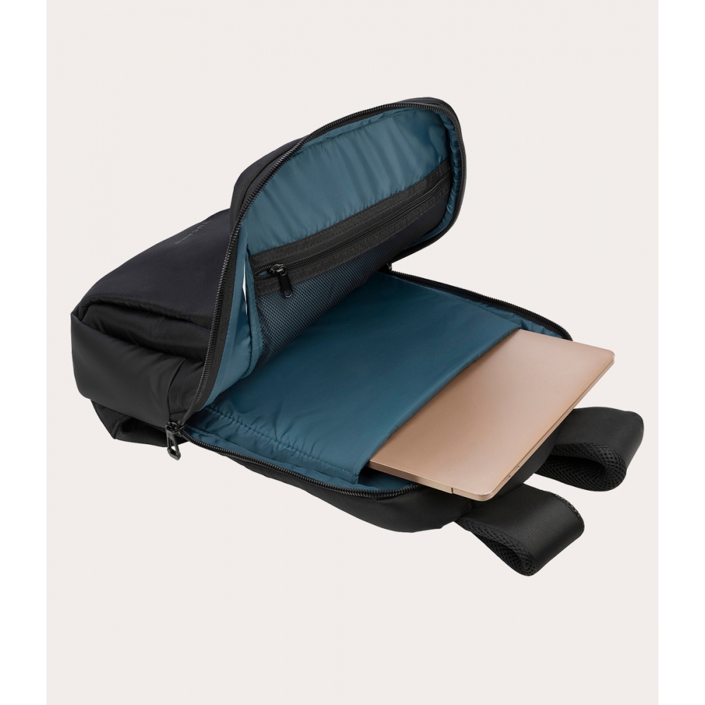 Zaino con AGS per Laptop 15.6" e MacBook Pro 16" BKLUN15-AGS-BK Zaino per laptop 15.6" e MacBook 16" dotato di sistema anti-gravity, una sospensione elastica degli spallacci concepita per ridurre il carico sulle spalle e sulla schiena quando il corpo è in movimento. La funzione anti gravity system, oltre a migliorare la postura e a ridurre lo sforzo muscolare, attenua in modo specifico la rigidità dei muscoli del dorso e del collo distribuendo in modo equilibrato il peso dello zaino tra le spalle e il bacino. Realizzato in materiale tecnico ad alta densità, Luna Gravity ha un'ottima organizzazione delle tasche. Il vano interno, è dotato di una tasca protettiva per laptop mentre Il lato anteriore presenta tasche con differenti altezze chiuse da cerniere. La parte posteriore ha uno schienale ergonomico, spallacci imbottiti con sistema di sospensione, fascia per trolley e tasca di sicurezza. Una rain cover estraibile, nascosta all'interno della base, permette di proteggere lo zaino durante la pioggia.