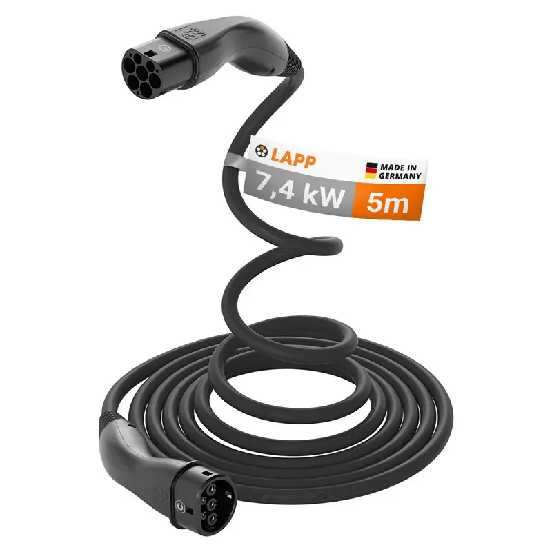 Il cavo di ricarica di Tipo 2 di LAPP consente una ricarica facile e veloce fino a 7,4 kW presso una stazione di ricarica pubblica o privata o una wallbox.