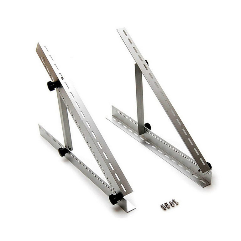 SET staffe per pannelli solari 200-350W Staffe triangolari per pannelli solari con potenza inferiore o uguale tra i 200W ed i 350W. - Inclinazione regolabile. - Lunghezza staffe: 104cm.