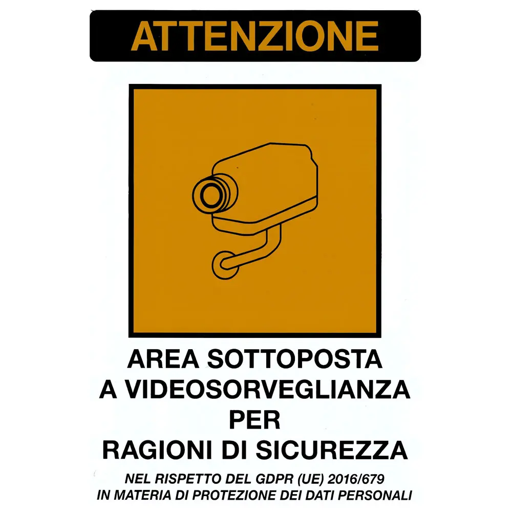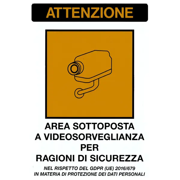Cartello con indicazione "ATTENZIONE AREA VIDEOSORVEGLIATA"