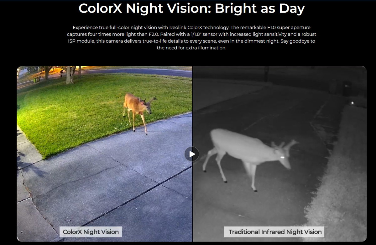 Experience true full-color night vision with Reolink ColorX technology. The remarkable F1.0 super aperture captures four times more light than F2.0. Paired with a 1/1.8" sensor with increased light sensitivity and a robust ISP module, this camera delivers true-to-life details to every scene, even in the dimmest night. Say goodbye to the need for extra illumination.