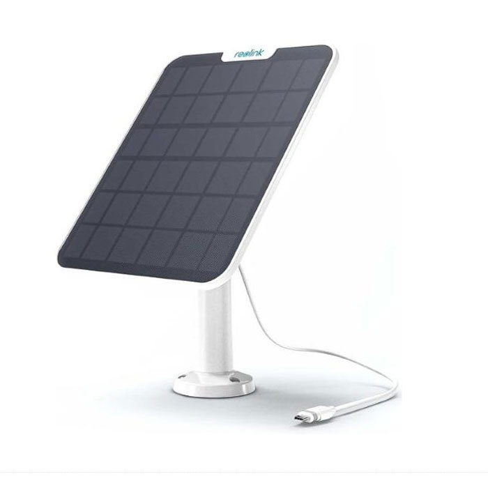 Pannello solare Reolink 6W BIANCO Collega la tua telecamera a questo pannello solare Reolink provvisto di cavo di collegamento di 4 m (incluso) per ottenere un’alimentazione continua. (Scarica la Guida rapida) Cavo di prolunga per pannello solare Reolink da 4,5 m fornito in dotazione.