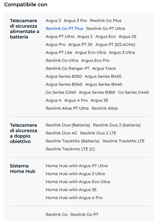 Adatto per: Argus 3 2K Argus 3 Pro Argus 3 Ultra Reolink Go Reolink Go Plus Reolink Go PT Reolink Go PT Plus Reolink Go PT Ultra Argus PT Ultra Argus 2 Argus Eco Argus 2E Argus Pro Argus PT 2K Argus PT Reolink Duo Reolink Duo 2 Reolink Duo 4G Reolink Duo 2 LTE